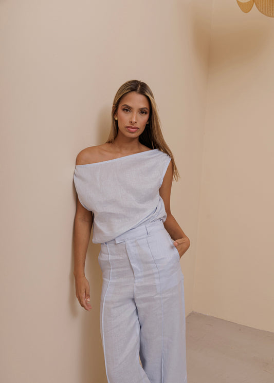 OFF SHOULDER TOP - BABY BLUE