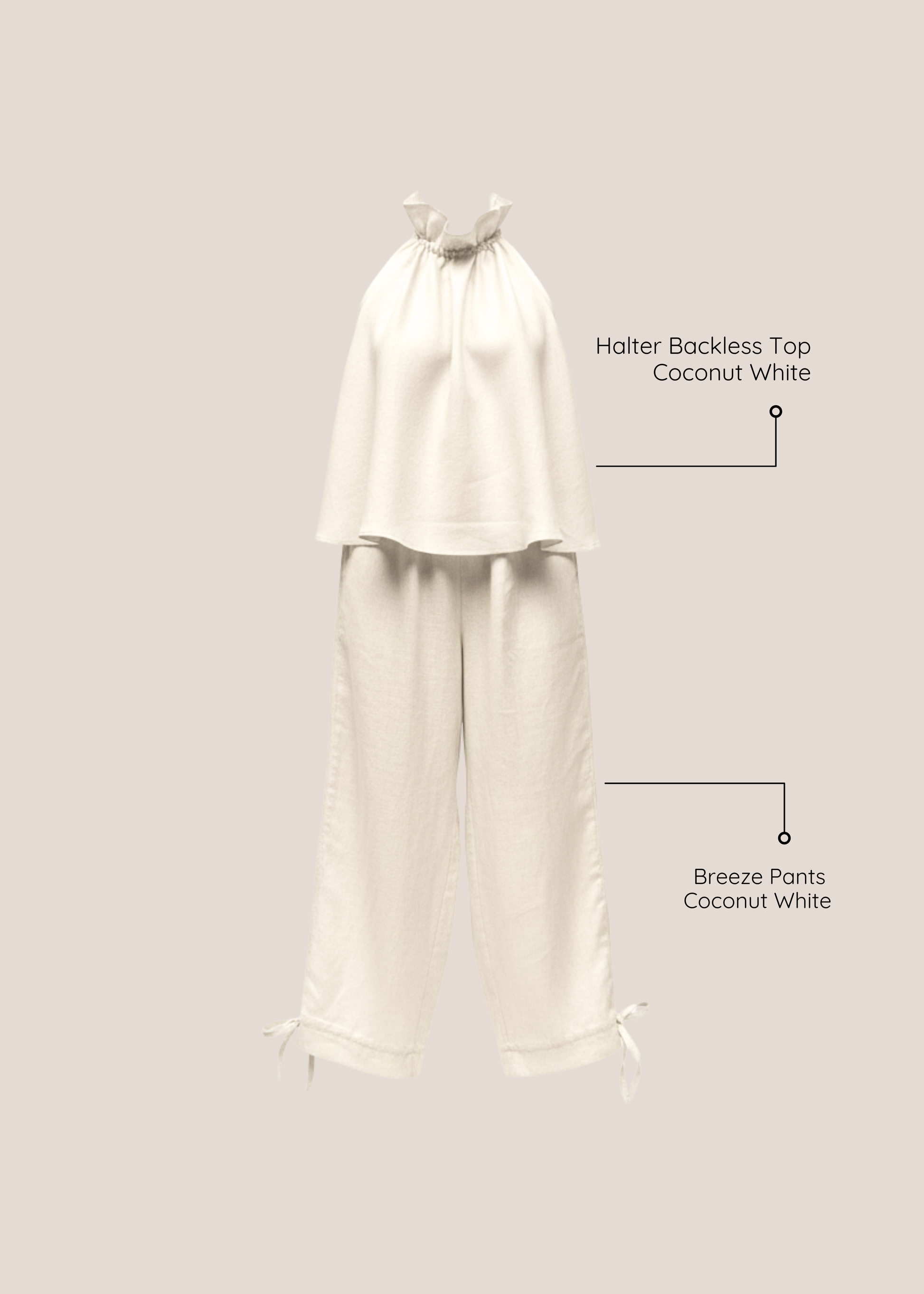 El Beach Set en color Coconut White está confeccionado en lino 100% natural, ofreciendo un conjunto liviano, cómodo y sofisticado para los días más cálidos. Compuesto por un top de corte relajado y una prenda inferior a juego, este set es ideal para disfrutar del verano con estilo sin esfuerzo.