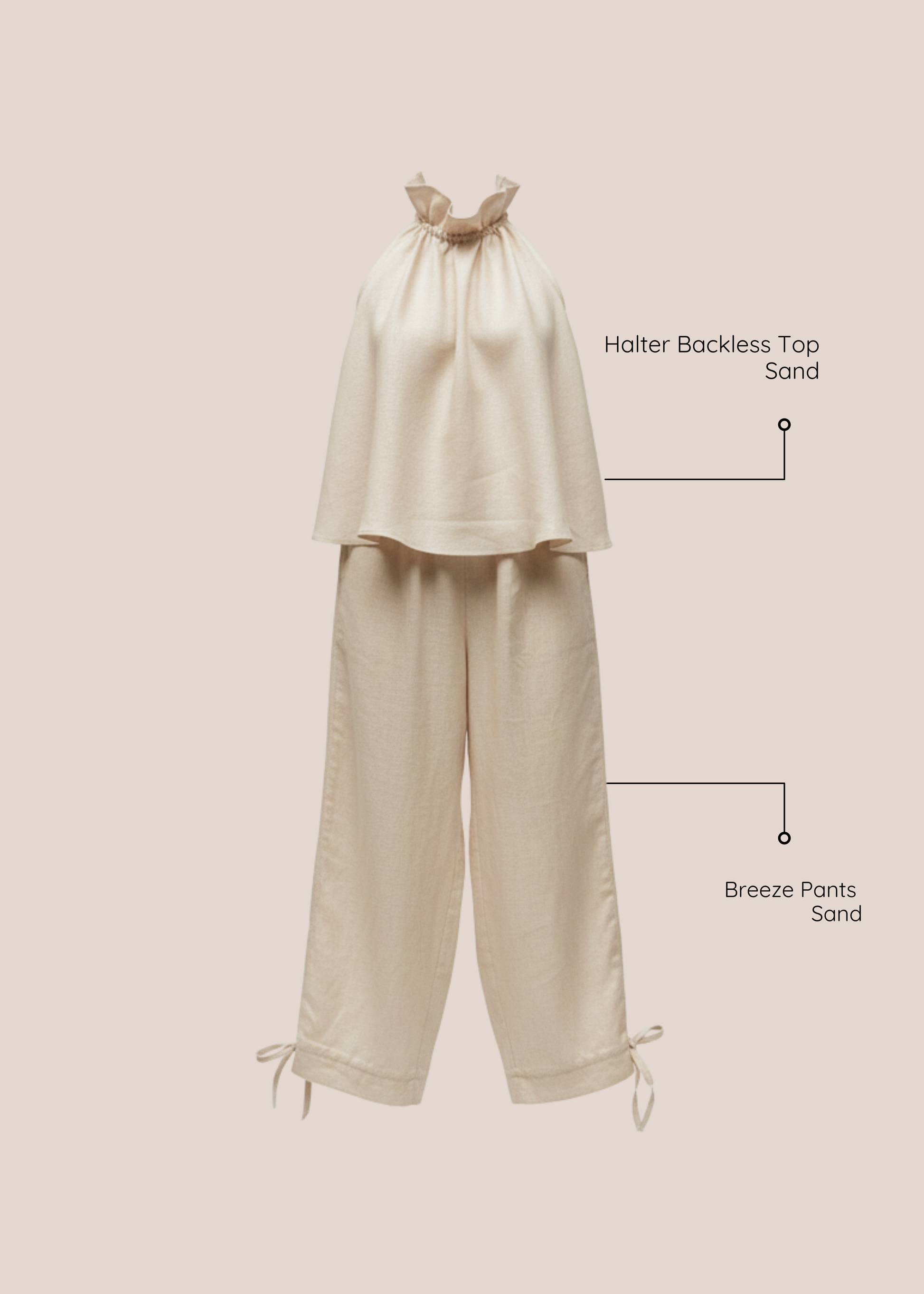 El Beach Set en color Sand está confeccionado en lino 100% natural, ofreciendo un conjunto ligero y cómodo que se adapta perfectamente a climas cálidos. Compuesto por un top de corte relajado y una prenda inferior a juego, este set es ideal para acompañarte con estilo desde la playa hasta un día casual en la ciudad.