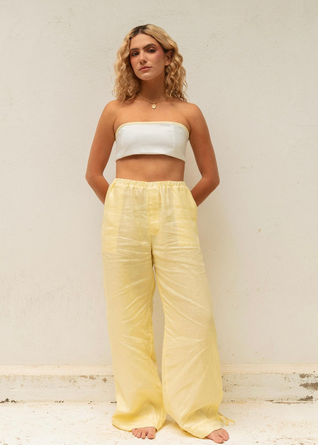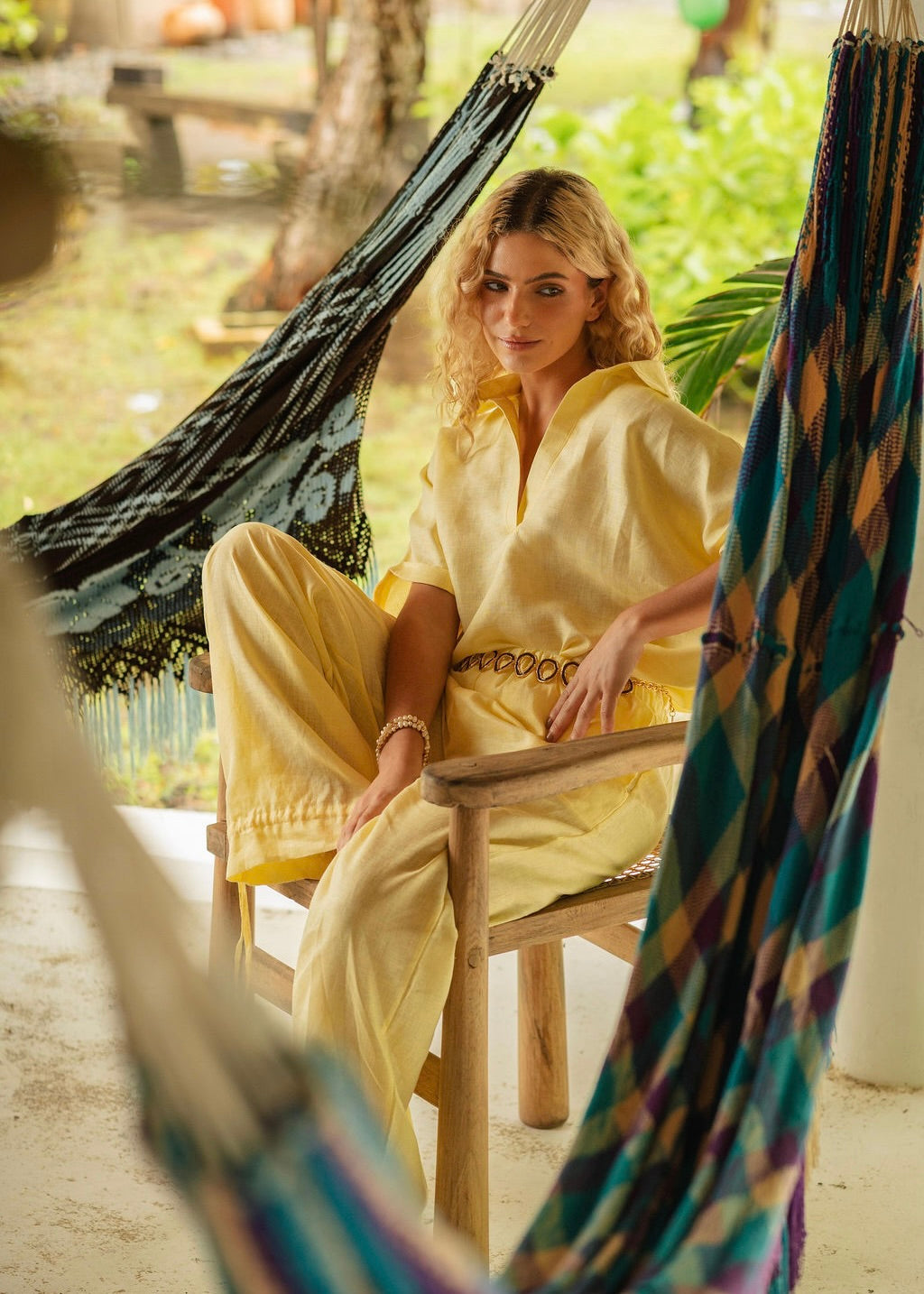 Los Breeze Pants en color Happy Yellow están diseñados para brindar frescura y libertad de movimiento gracias a su confección en lino 100% natural. Su corte suelto y fluido te acompaña con comodidad en cada paso, mientras que el vibrante tono Happy Yellow llena de alegría y energía cualquier outfit.