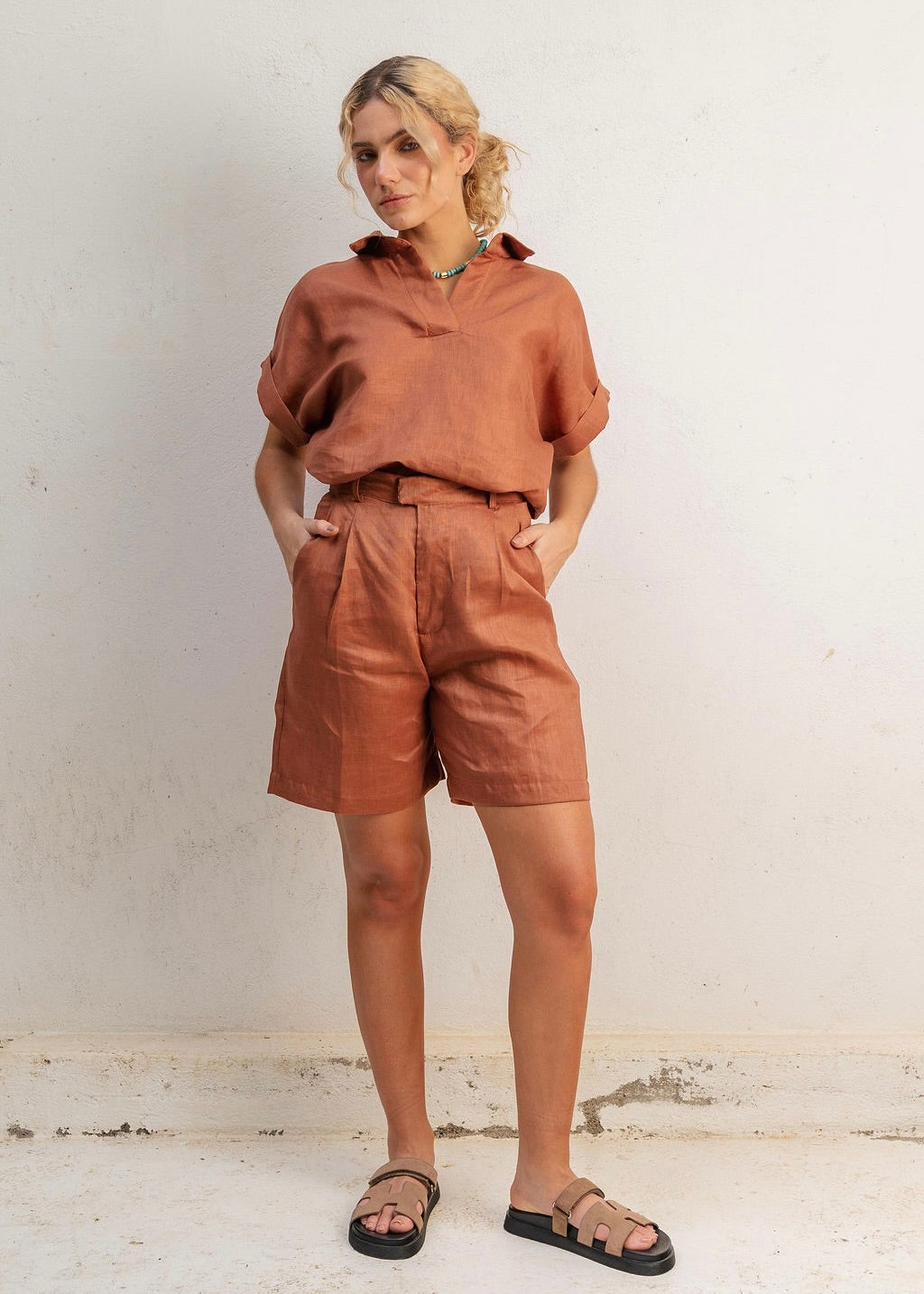 La Classy Bermuda en color Espresso es una pieza esencial para quienes buscan vestir con elegancia incluso en los días más cálidos. Su confección en lino 100% natural proporciona una sensación ligera y fresca, ideal para mantener la comodidad sin sacrificar el estilo.