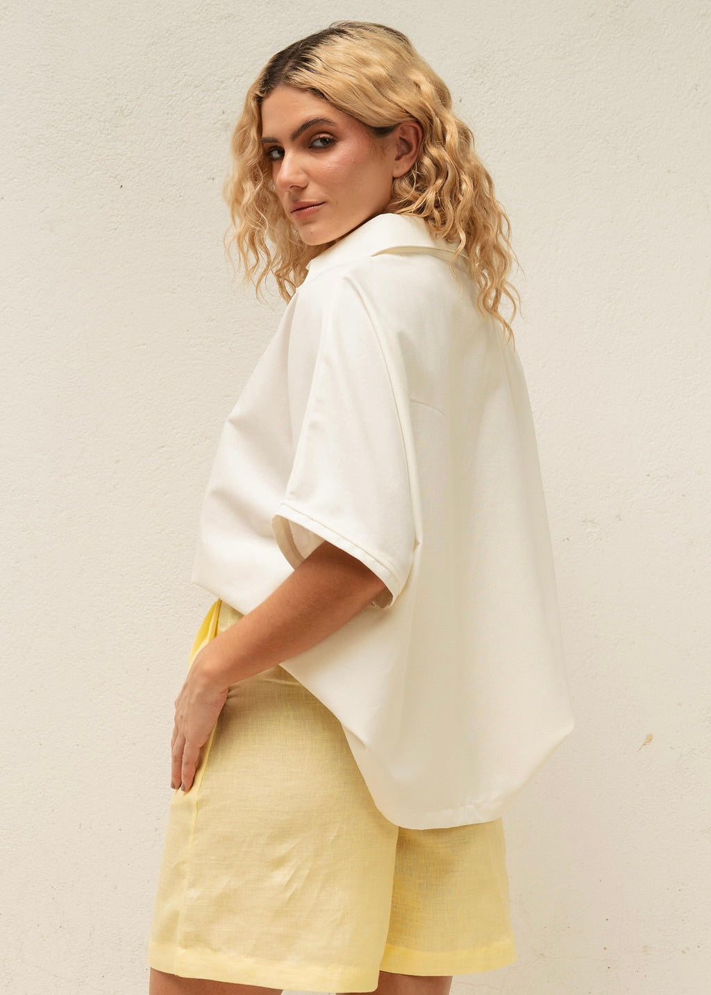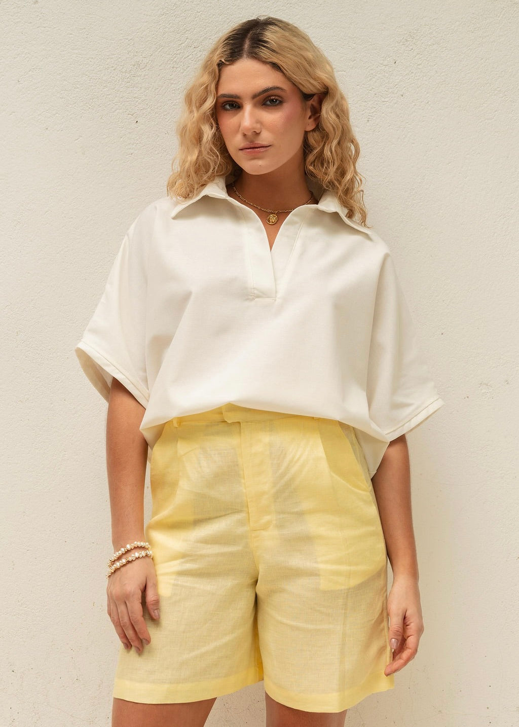 La Classy Bermuda en color Happy Yellow está confeccionada en lino 100% natural, ofreciendo una prenda fresca, ligera y perfecta para los días cálidos. Su corte clásico y detalles refinados hacen que esta bermuda sea ideal para quienes buscan combinar elegancia con un toque alegre y moderno.