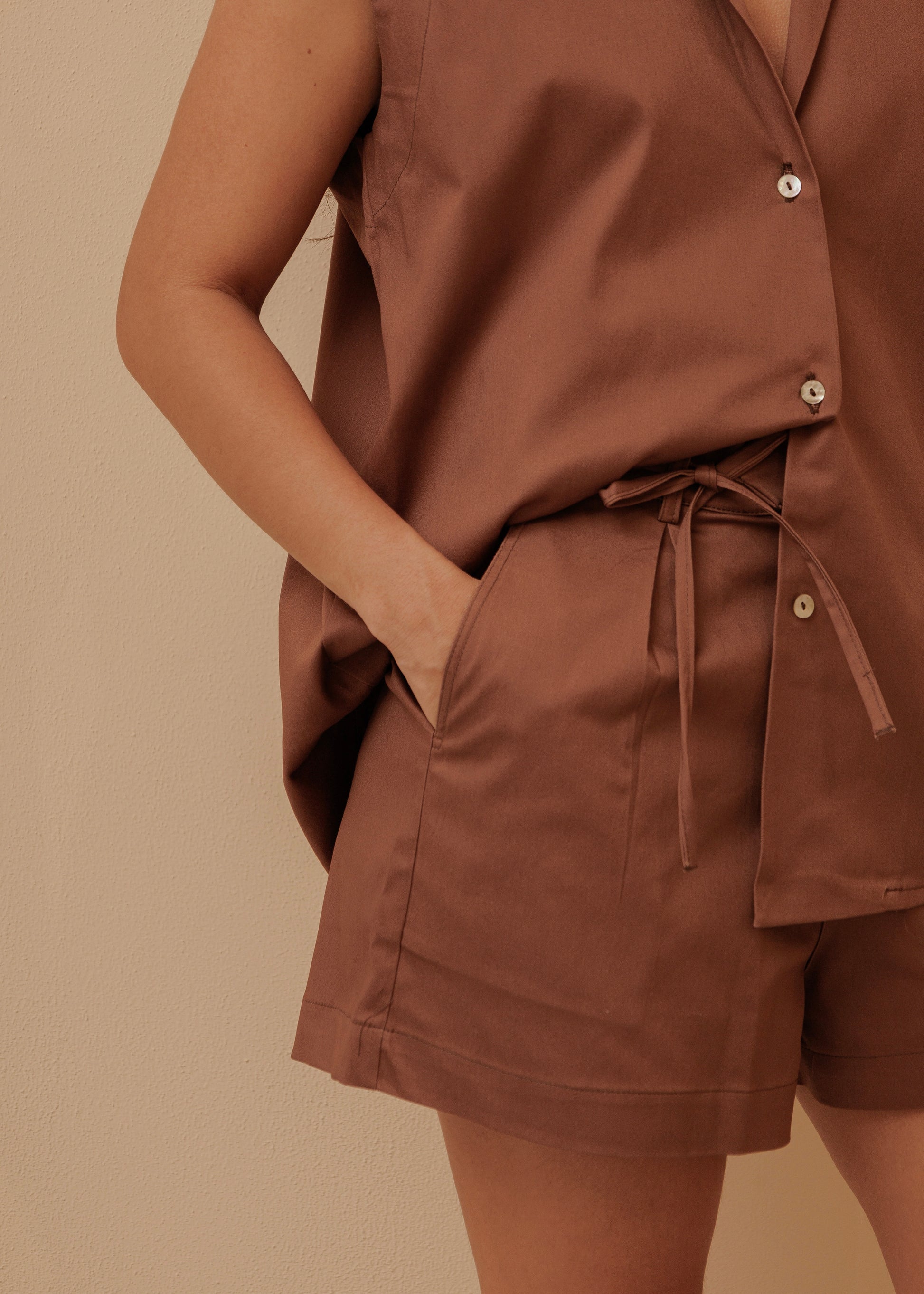 El color Espresso aporta una estética cálida y sofisticada, ideal para cualquier ocasión, ya sea para un look casual o más arreglado. Su diseño moderno y fluido resalta por su sencillez, al mismo tiempo que ofrece una silueta favorecedora que se adapta a tu cuerpo con facilidad.