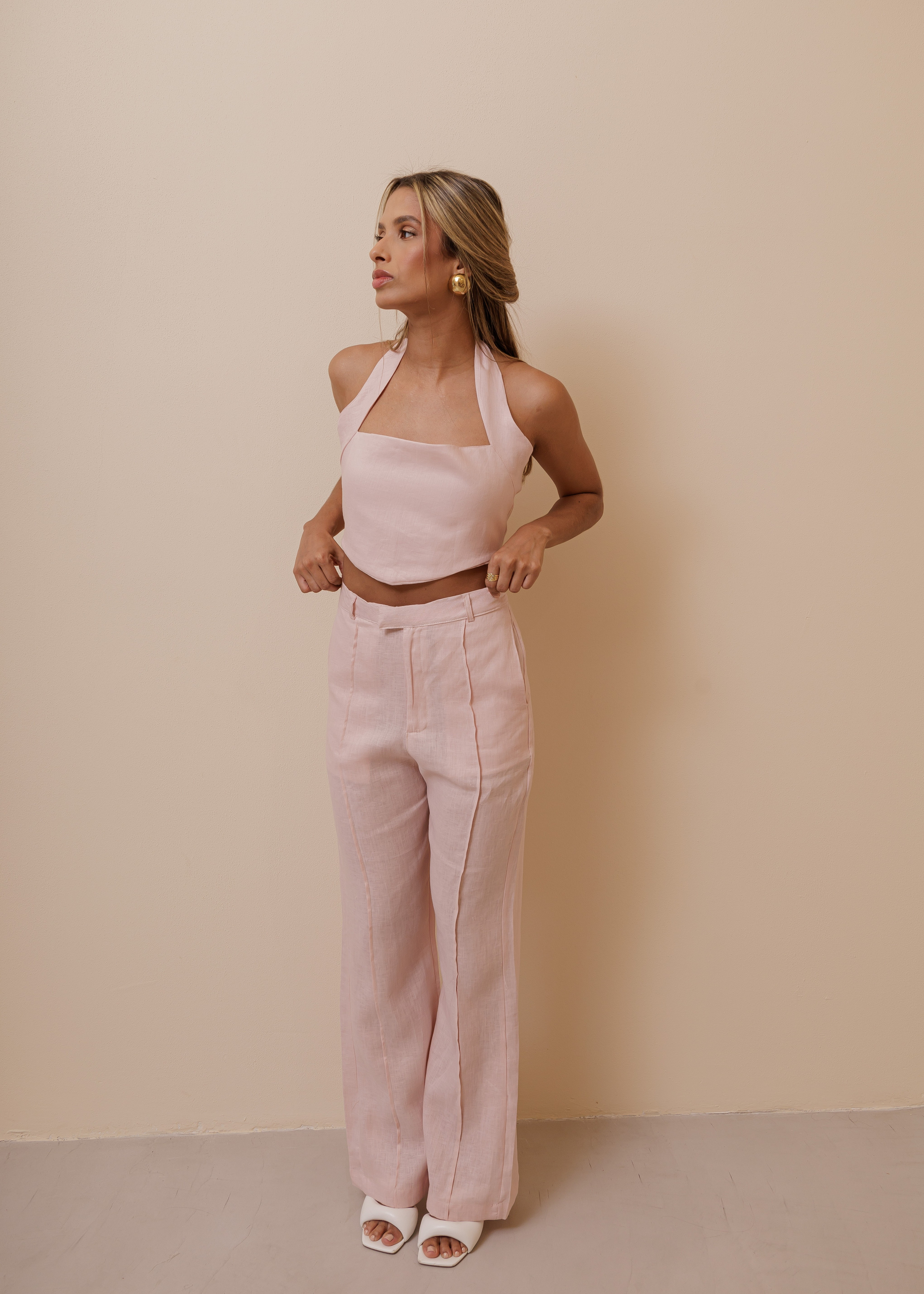 El pantalón "Fold" Prime Linen conserva nuestra favorecedora horma de pantalones, con un detalle de pliegue frontal que aporta elegancia y comodidad.