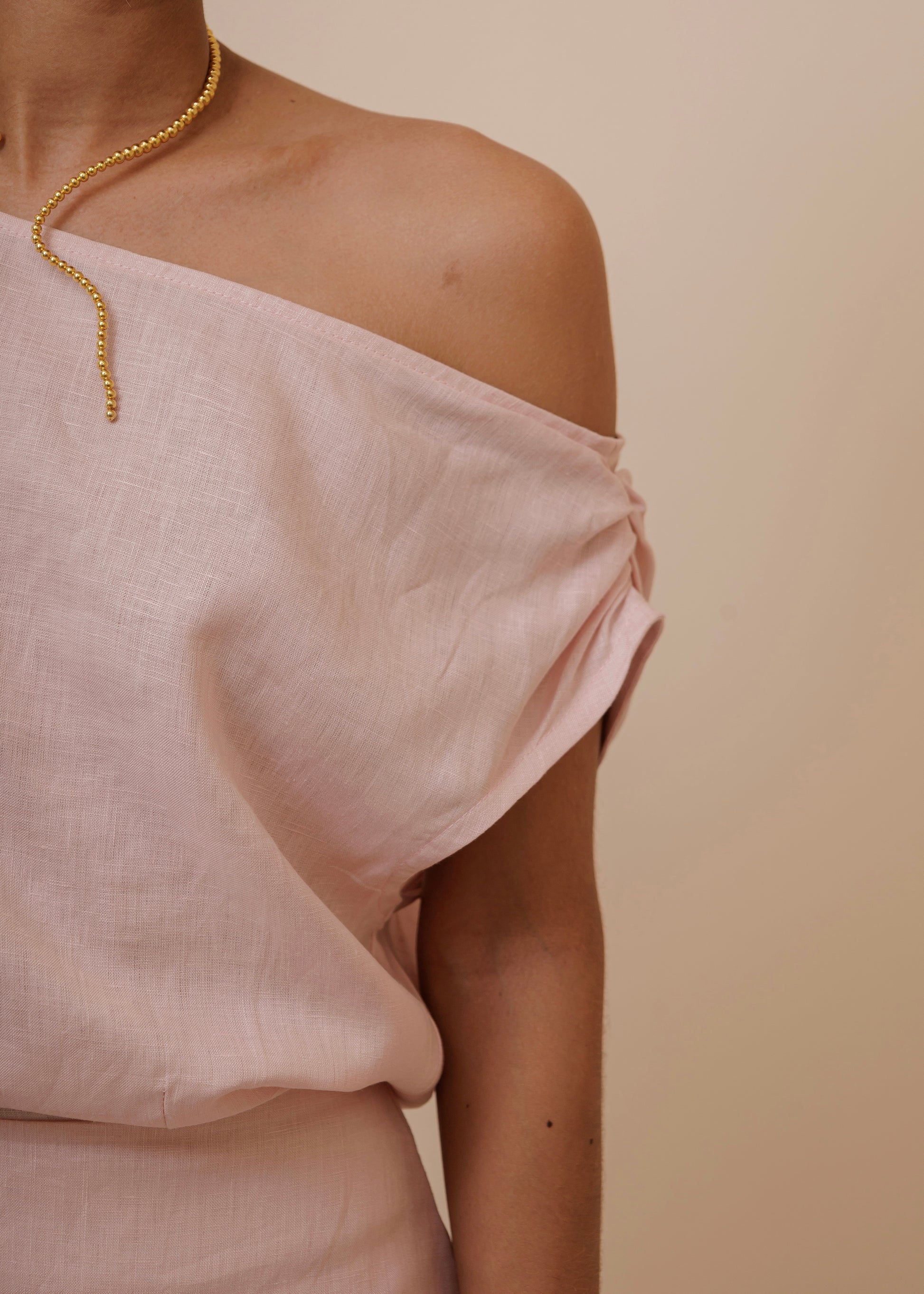 El Off Shoulder Dress - Dusty Rose está confeccionado en lino 100% de la mejor calidad, lo que le otorga una textura suave, fresca y ligera, ideal para cualquier ocasión. Su diseño off shoulder resalta los hombros con un toque femenino y elegante, mientras que el delicado tono rosa añade una dosis de sofisticación y frescura. El lino de alta calidad no solo garantiza comodidad y transpirabilidad, sino también una caída fluida y un ajuste cómodo que te hará sentir libre y chic.