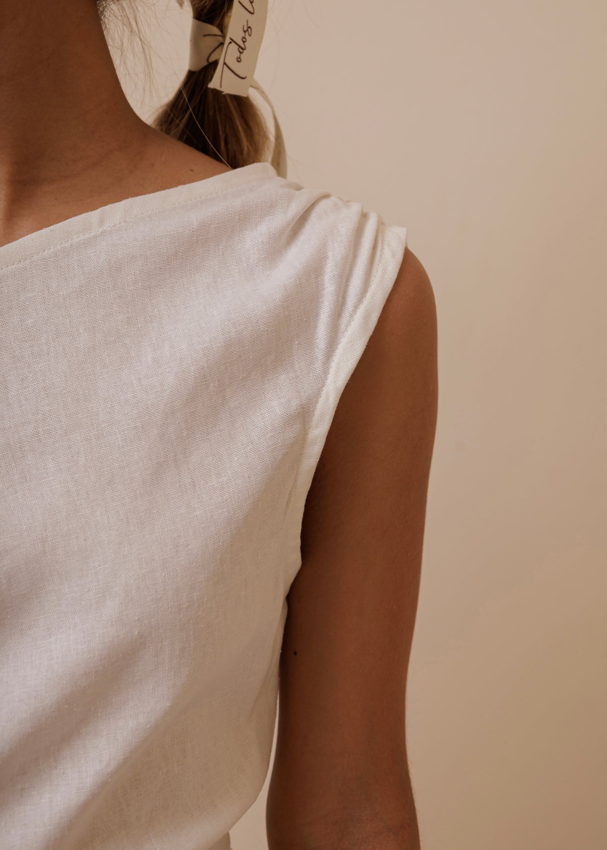 El diseño off-shoulder del vestido realza los hombros con un toque de sensualidad sutil, mientras que la caída mini acentúa las piernas y vibrante. El tejido, suave y ligeramente estructurado, proporciona un ajuste favorecedor y cómodo, adaptándose a la figura con gracia. Los detalles de la cintura ceñida y el corte fluido aseguran una silueta estilizada que fluye con cada movimiento.