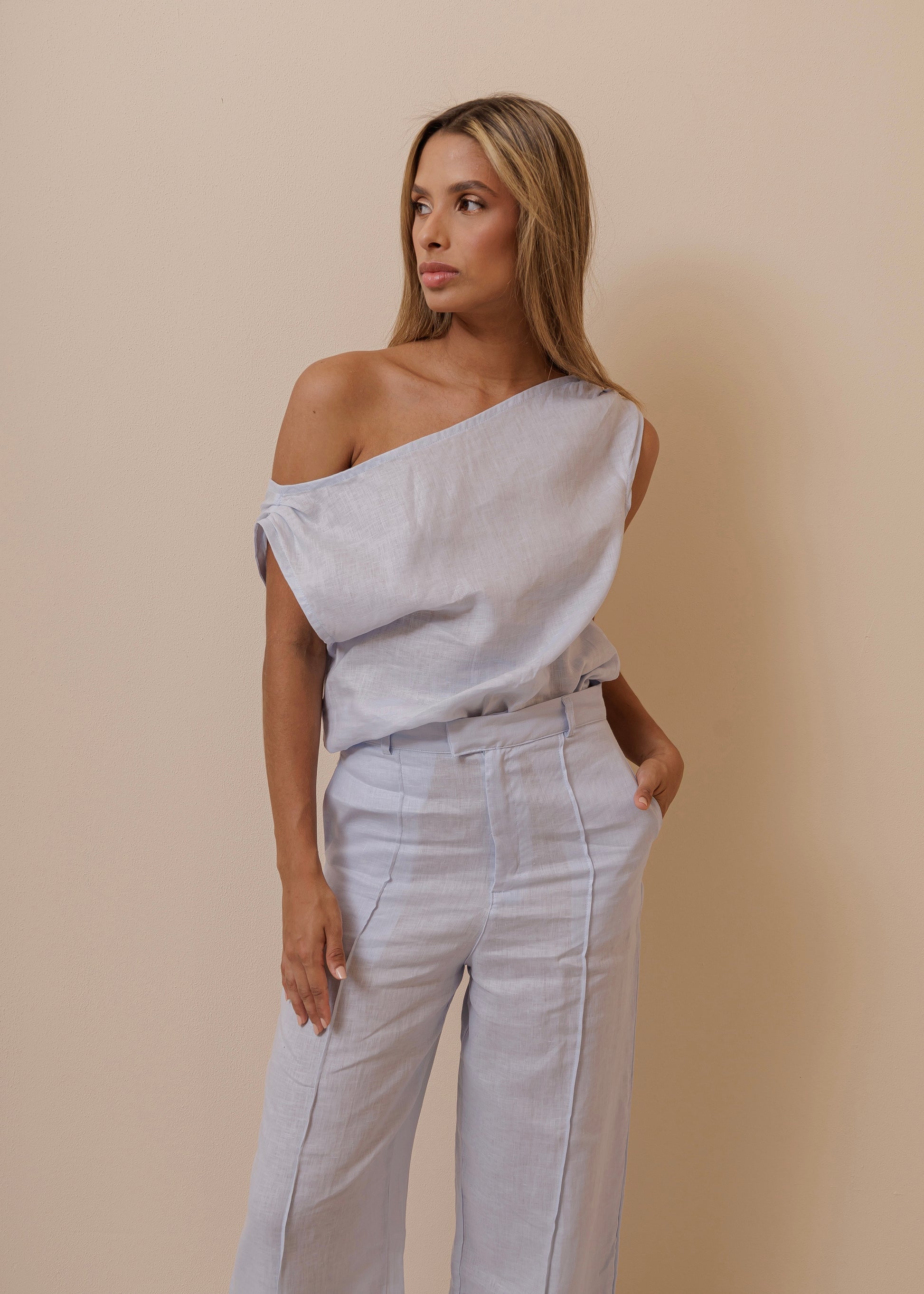 Con una caída fluida y sofisticada, este top es una pieza versátil que destaca por su estilo minimalista. Su diseño de un solo hombro crea una silueta elegante y moderna lo hace ideal para ocasiones especiales o para elevar cualquier look cotidiano.Esta pieza es perfecta para quienes buscan una prenda atemporal con un toque de delicadeza.