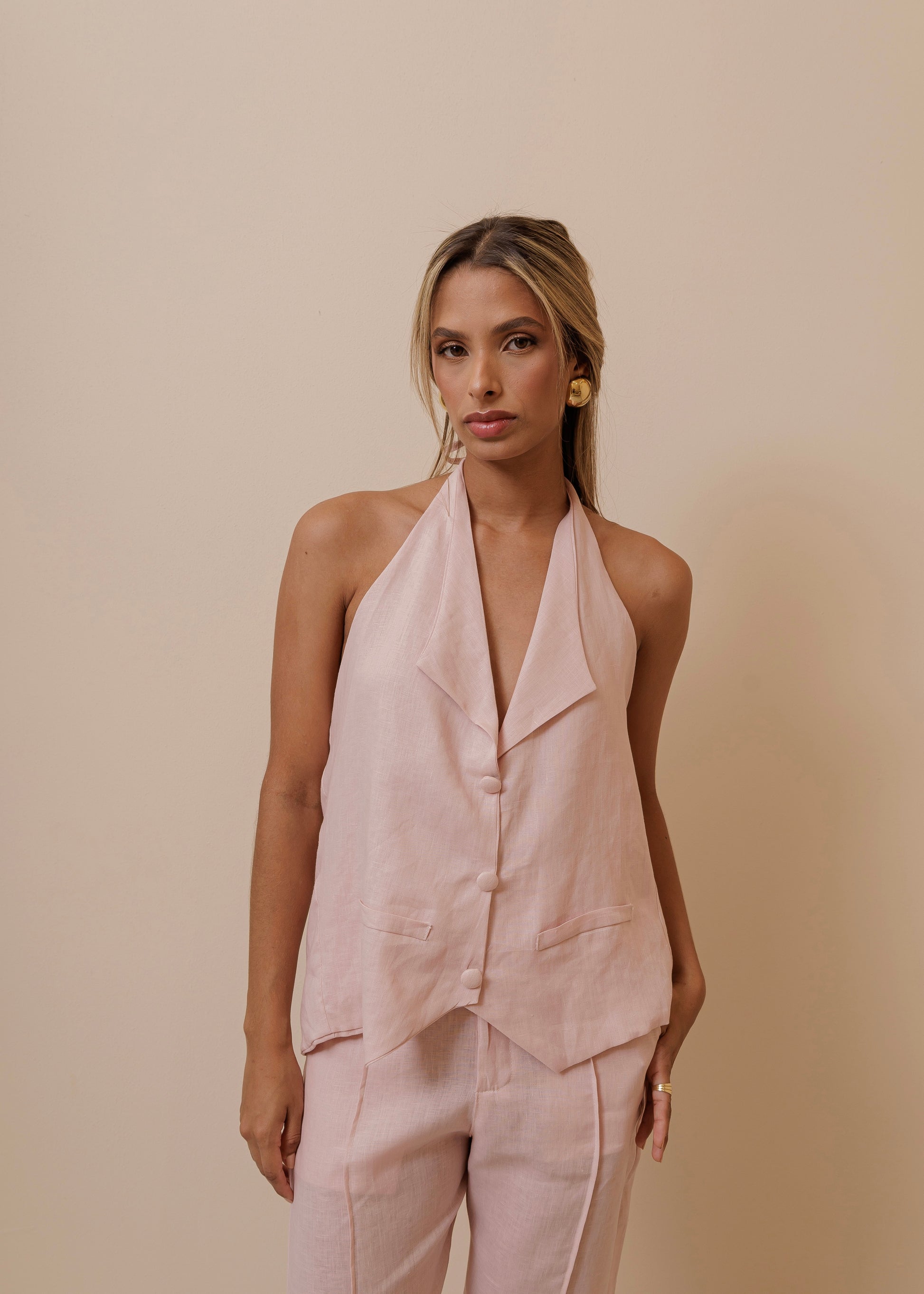 Inspirado en el clásico traje, incorporamos nuestro fresco y descomplicado modo de vestir en el Caribe a este set de pantalón y chaleco.