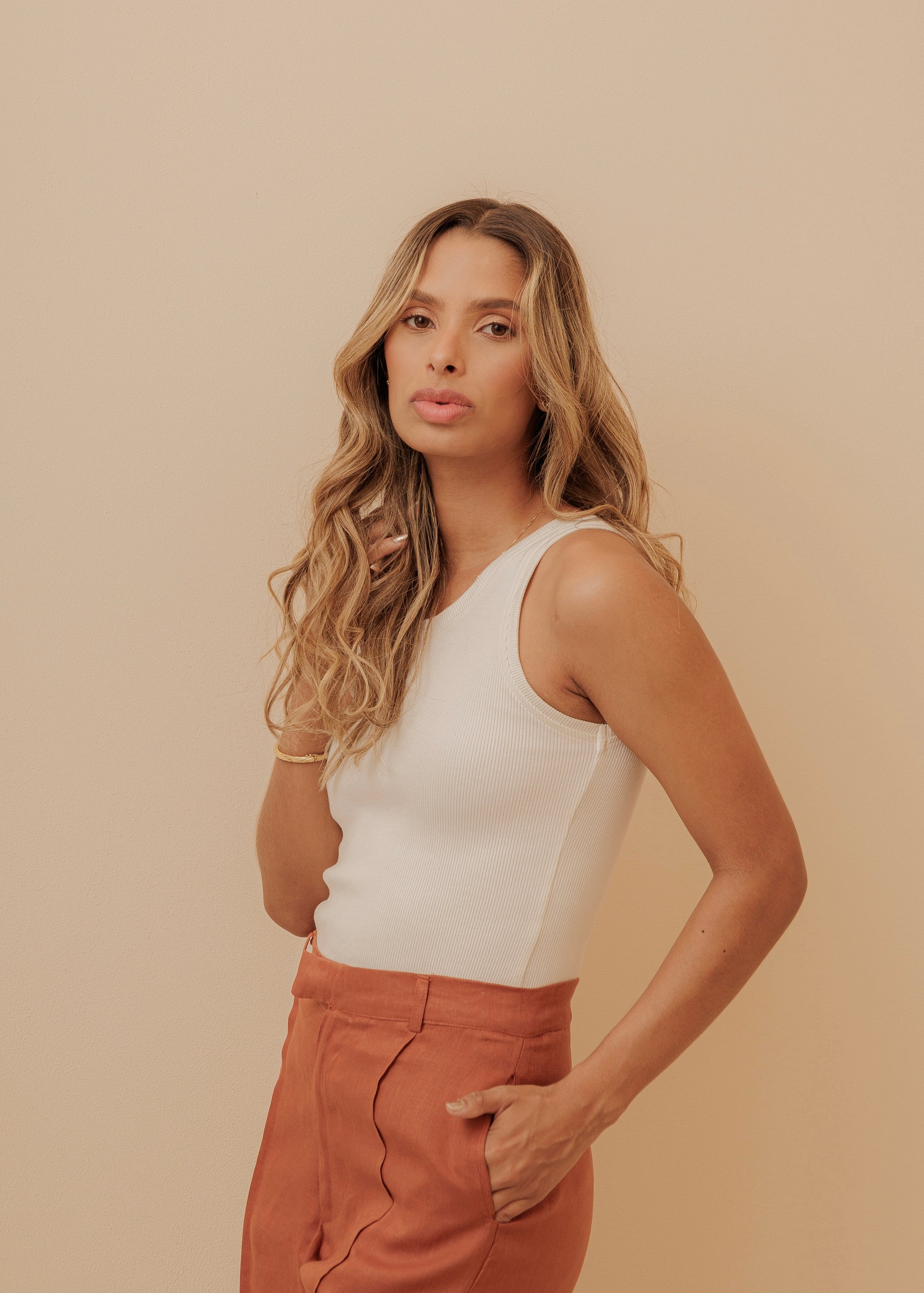 Nuestro Tank Top Ribbed está confeccionado en algodón pesado, brindando una sensación de estructura sin perder suavidad y comodidad. Su tejido acanalado y su fit ajustado realzan la silueta, convirtiéndolo en una pieza esencial y versátil para cualquier guardarropa. Perfecto para usar solo o en capas.