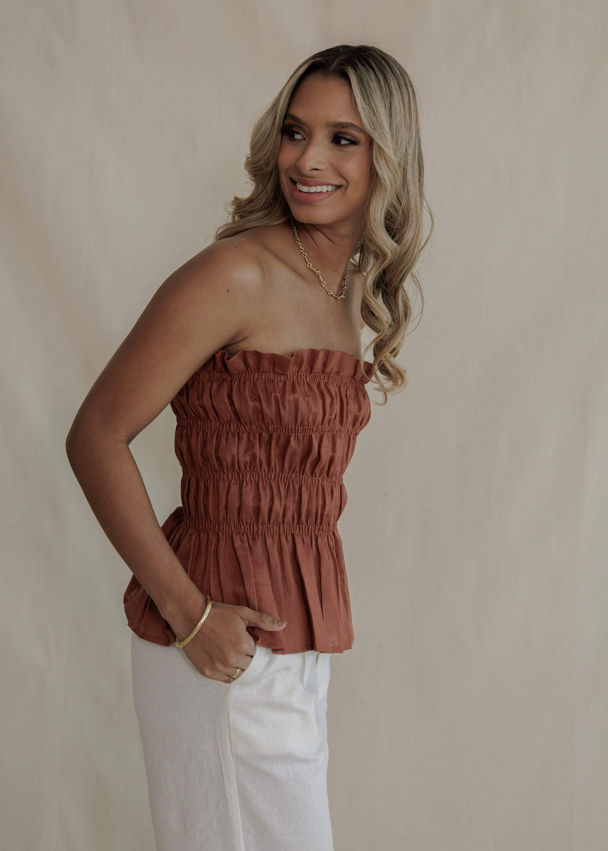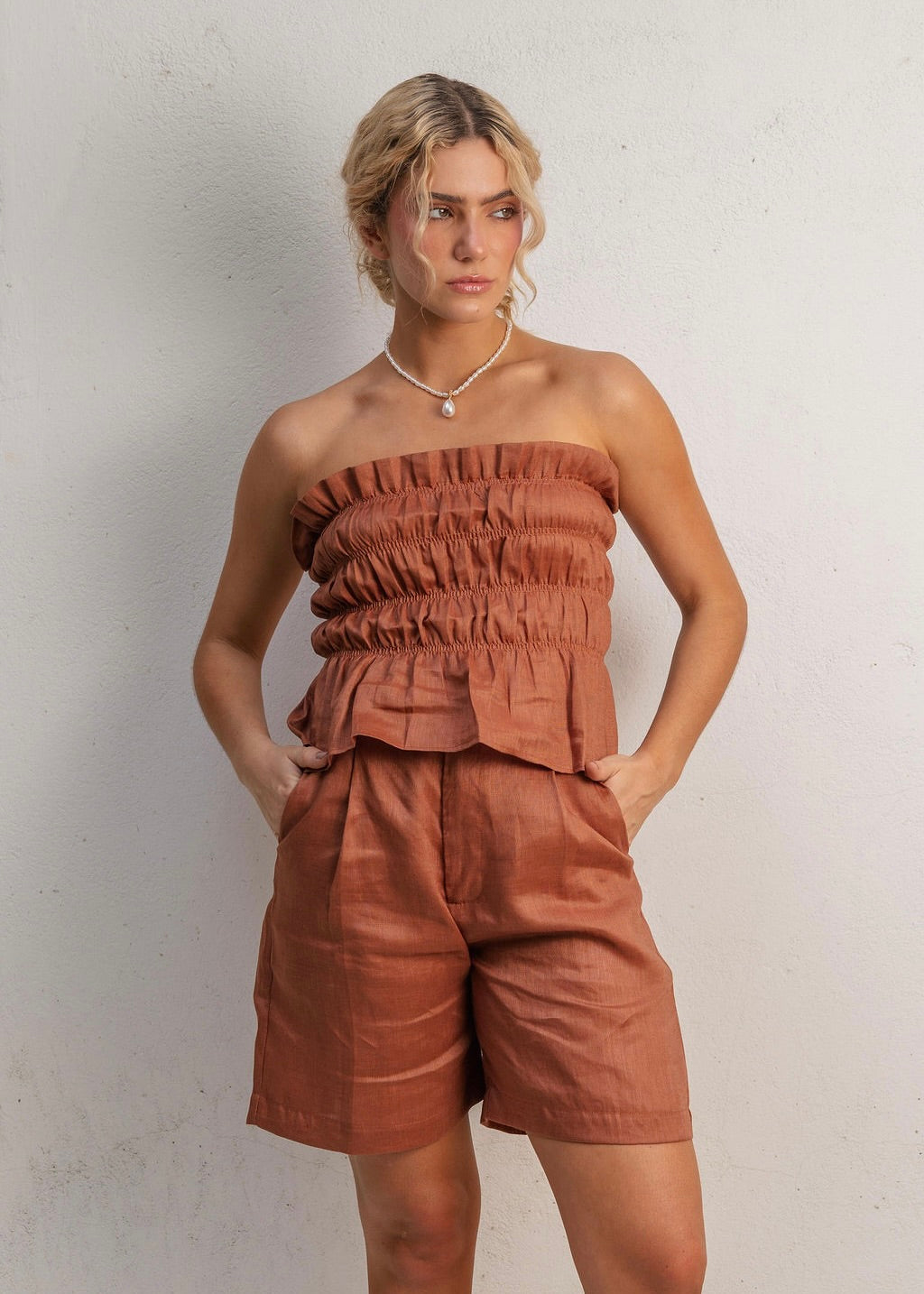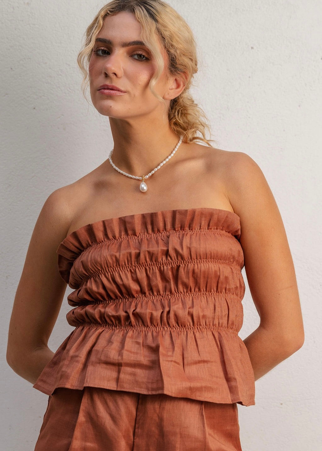 Sin tirantes, esta pieza garantiza total libertad de movimiento, haciendo que sea la elección perfecta para quienes buscan comodidad sin sacrificar el diseño. El color espresso le da un toque sofisticado y versátil, adecuado para combinar con diferentes estilos y ocasiones.