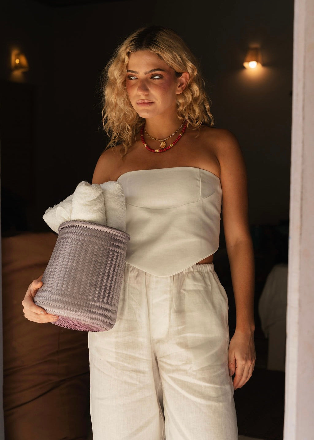 El It Top Set en color Coconut White combina la pureza del blanco con la frescura del lino 100% natural. Este conjunto incluye un top estructurado y una prenda inferior coordinada, diseñados para ofrecer comodidad y estilo en cualquier ocasión.