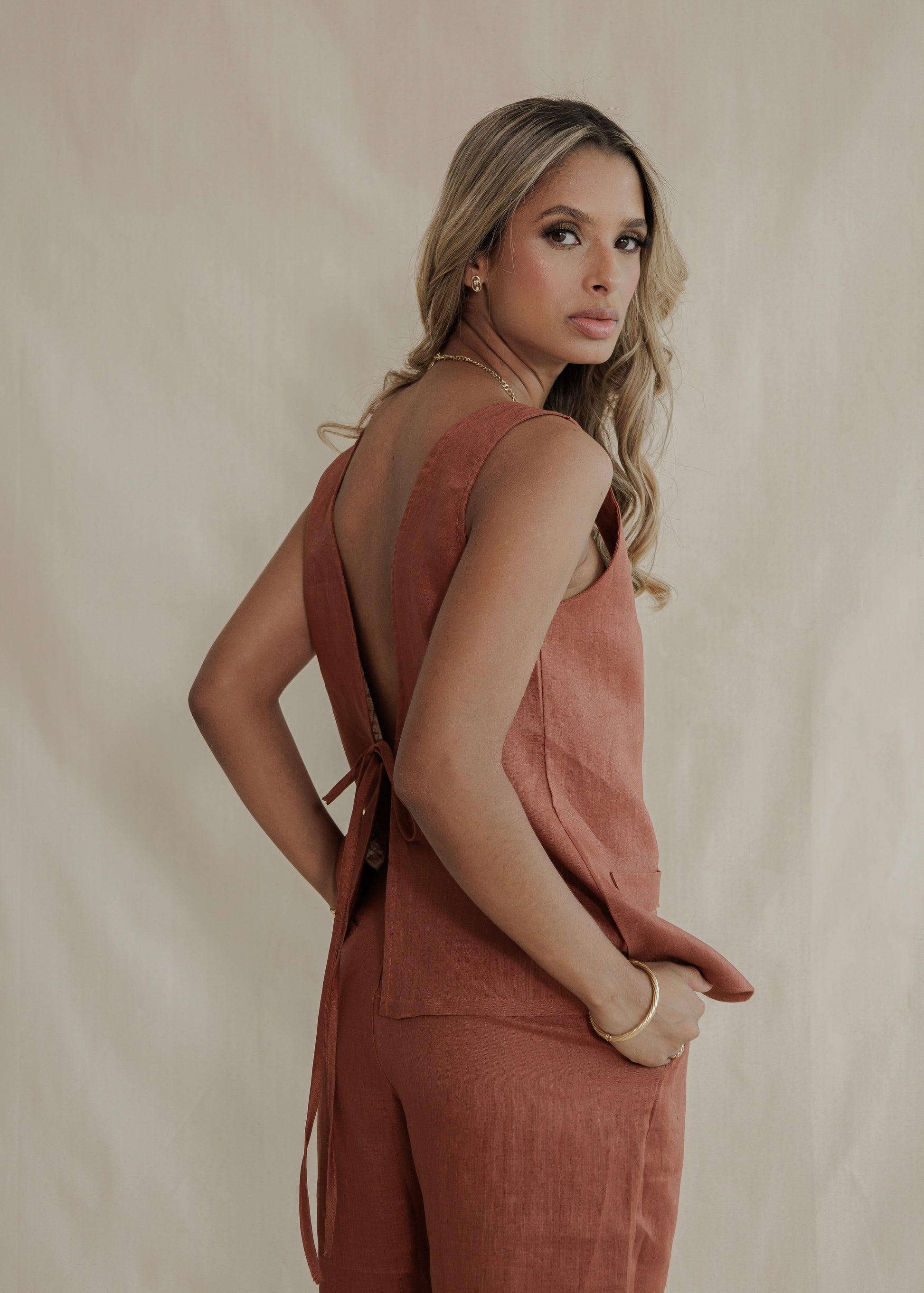 Esta prenda es confeccionada en fibra de Lino 100% Premium, cultivada en Europa y cuenta con certificación European Flax.